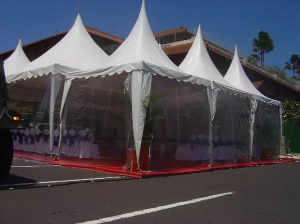 Tenda sarnafil ukuran 5x5 untuk event & kebutuhan semi permanen. Pilihan ketebalan PVC membrane: 420gsm / 500gsm / 550gsm. Harga bisa nego, pembelian partai bisa lebih murah.